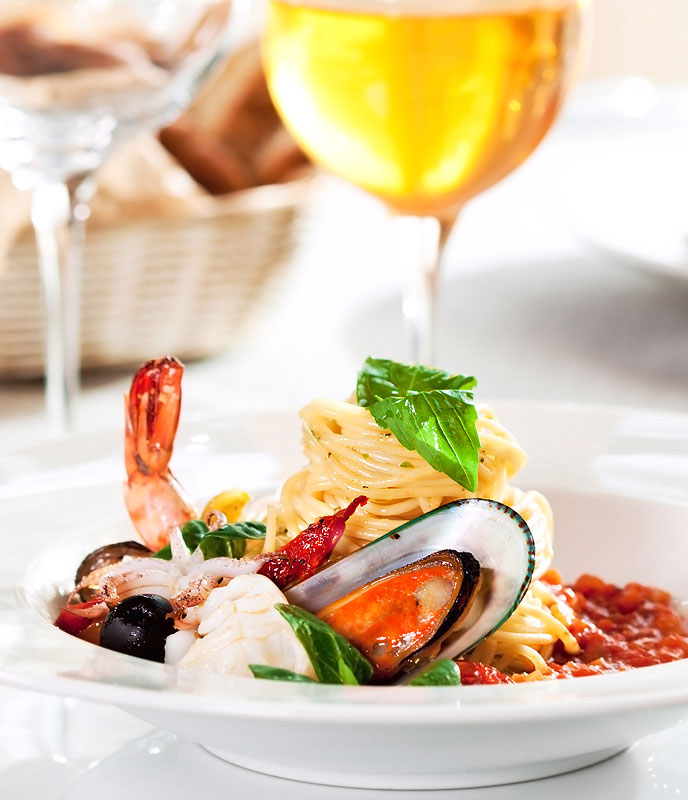 chargrilled broccoli & lemon red tiger prawns seabream shellfish squid